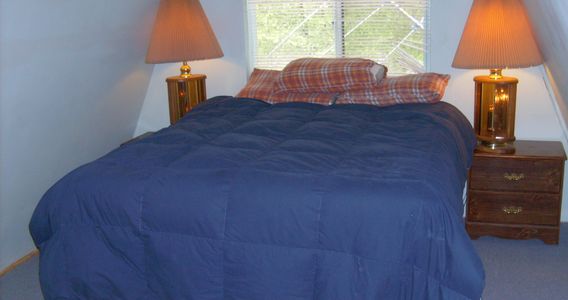 Upstairs Queen Bed. This cabin also has a Hot Tubs for Adults. See in the pictures below!